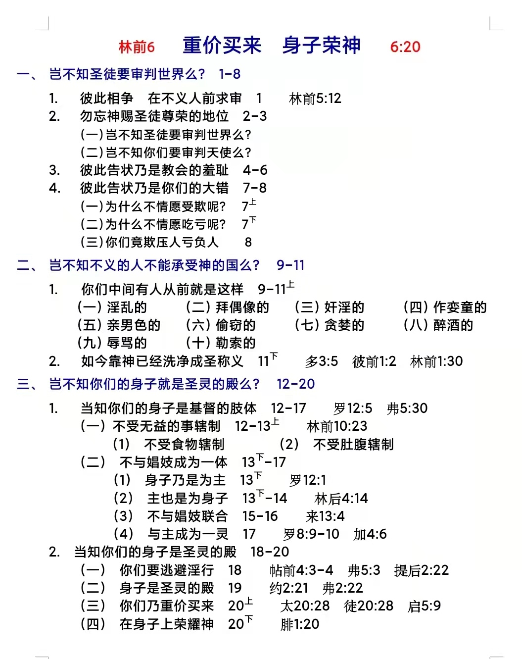 林前6 重价买来身子荣神